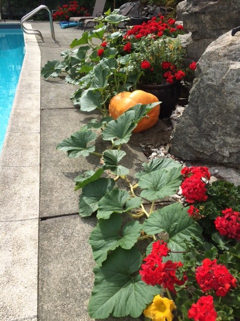 Another shot. Maybe we should grow geraniums all around patch to enhance the pumpkins.