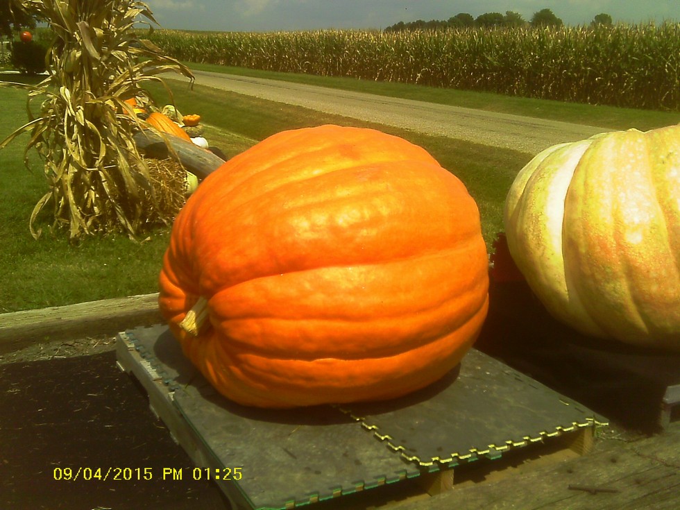 one of the prettiest pumpkins and nicest shapes I have grown. It would actually sit on its end but I didn't want to put stress on it. 500 House 2015 UOW ( 350 House 14 x 1662.5 Stelts) The 350 House was a (326 House 13 x 1059 VM) 326 House was the 568 Kazenski x open. never been to a GPC weighoff but am guessing if this pumpkin had a little more size it would be a HD contender.