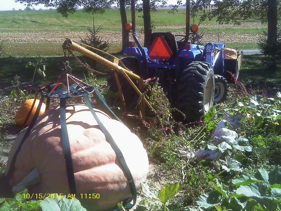 my little tractor couldn't lift it until I got on the back of the boom and pushed up on it. Will need a bigger tractor if I grow bigger pumpkins.