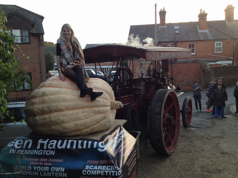 This is my daughter Katie modelling with our pumpkin and an amazing traction engine.