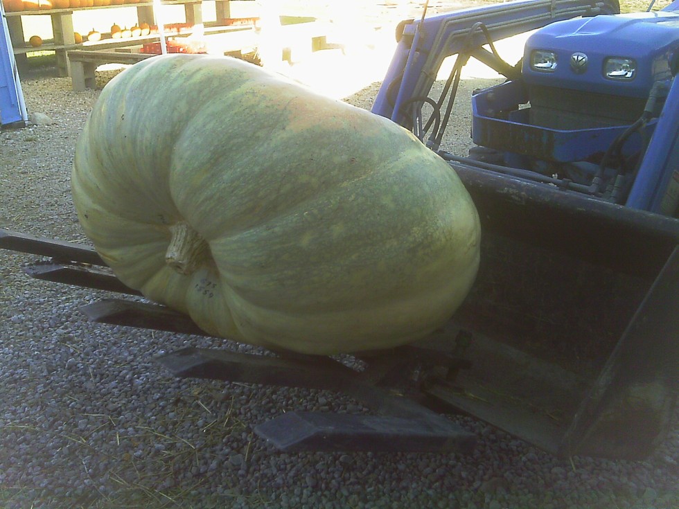 404 House 2015 UOW ( 675 Conniff x 559 Fraley) Pumpkin is actually an off white with a little orange on front and a green top. 675 Conniff was 500 Herrmann x self 500 Herrmann was 1059 V/M by self It will be interesting to see what this seed grows next year.