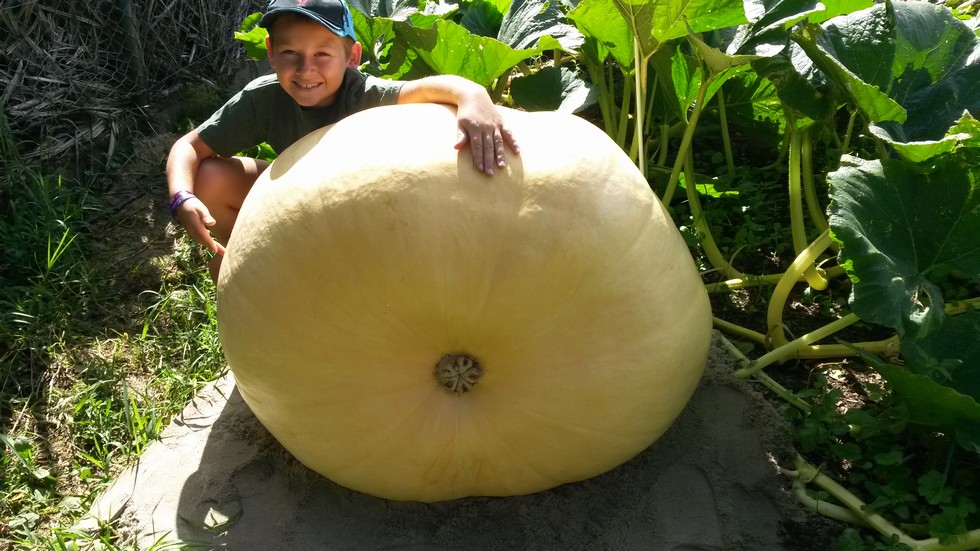 Alex is very happy with his pumpkin measuring 250 ott (350 lbs.) at about 35 dap, so well on his way for a pb.