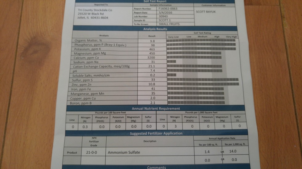 Soil test came back and looks pretty good. I'm thinking some sulfur and my normal Compost. Anything I'm missing let me know.