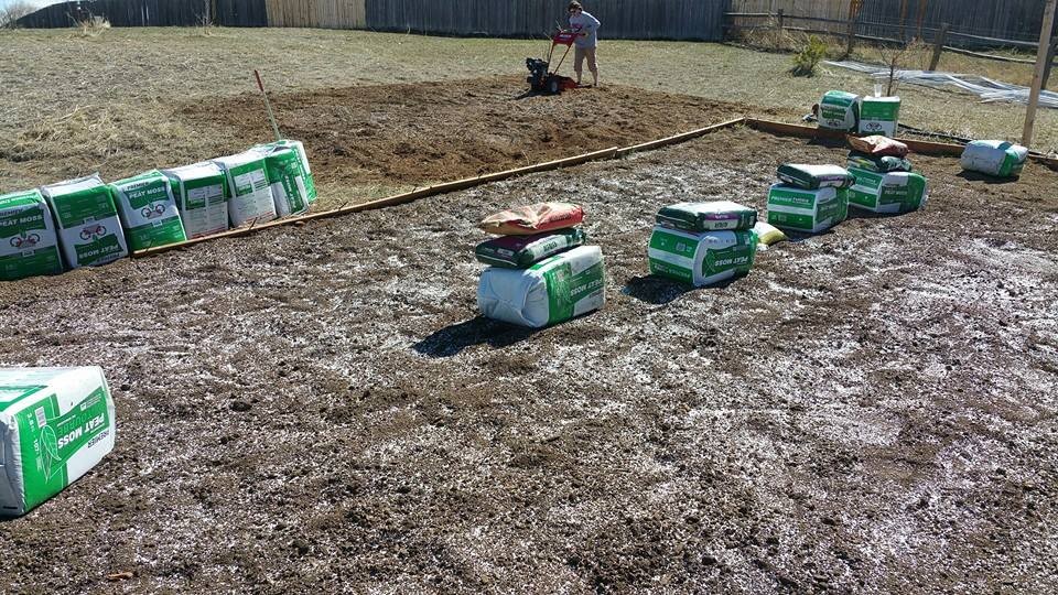 Added a few goodies today. Elisa in the back tilling in some stuff into her patch.