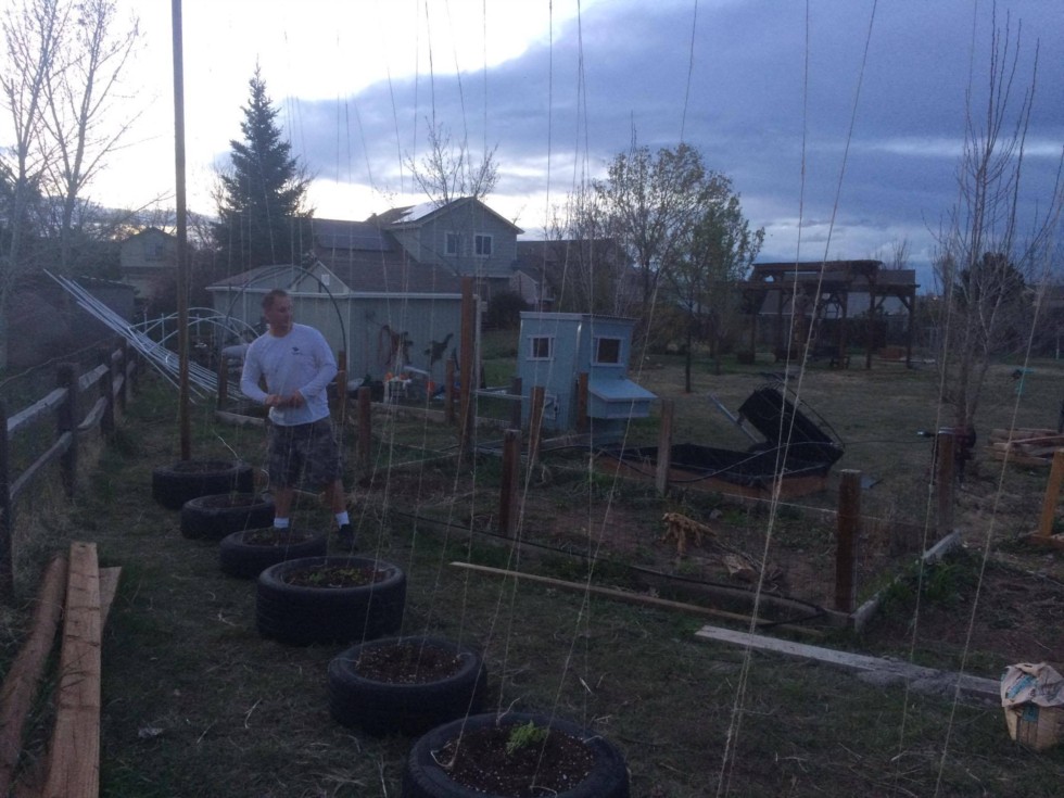 A side project for this year is to grow some hopps. This will also block the chickens from the neighbors. :-p