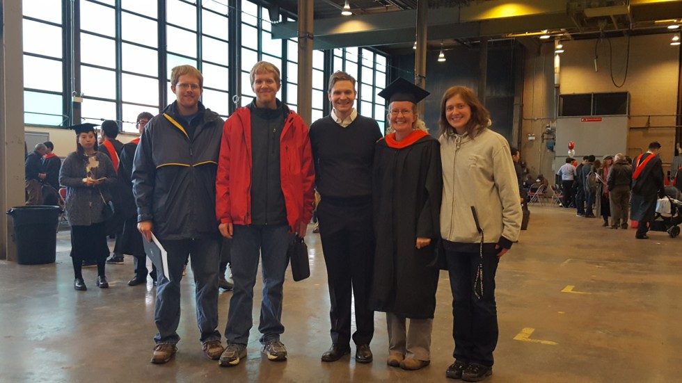 Graduation Day - I finally have my Master's Degree!!! Big thanks to Benjamin and Christopher for standing beside me throughout my studies, making many meals, brewing coffee, research books and papers everywhere, all nighters, paper review sessions, presentation reviews, my bickering over long calculations and seemingly endless research ventures. In the picture, my advisor, Professor Stephens, who provided all his passion and knowledge of the Built Environment. The time really went by too quickly in some cases because he helped me learn so much and become a professional engineer! The job search begins and ongoing. Hopefully, with good news to share with all.