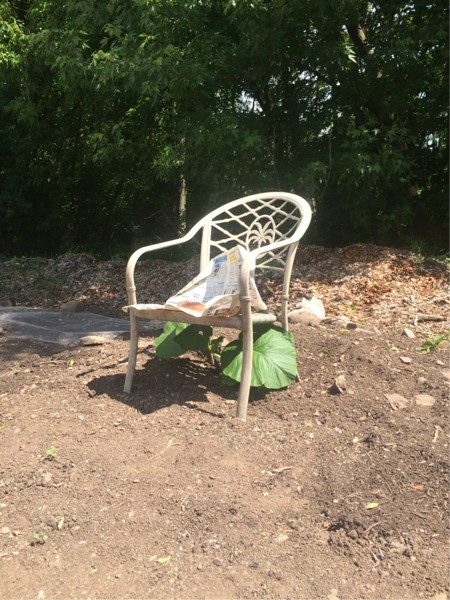 Here's one for the new growers that feel like they are waaaay behind after seeing some journals...(I remeber my first time)...don't judge your plant by what others have in their gardens...this one was planted five days ago...I think it can still get to 1000lbs...plenty of time to grow a big pumpkin...besides..most of these guys are some of the best growers in the world...you'll drive yourself nutz trying to keep up...just keep up with your weeding/ burying and stick to your feeding schedule...these plants can amaze...