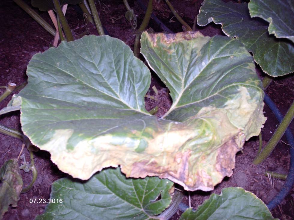 1623.5 Wallace I entered the morning chat this am since I found this on my plant. Growers online were really helpful and spent sometime talking with me. Plant was doing fine and then a few days age some wilting of the leaves. I have sprayed Sevin and Daconil, but the SVB is really active in the neighboring plots. What is this? I tried a hunt through the vines later and found evidence of some type of entry under two of the vines. Sprayed with a bleach solution and then Sevin. Also prayed the stump and reburied vine. Very hot weather 90+ and high heat indexes with lots of humidity. Lot of rain also last few days.