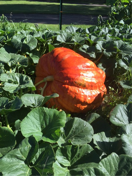 community garden-Lack of care for the past 3 weeks is showing. Weeds and stray tertiaries everywhere. The pumpkin is taping about 500 pounds right now. Due to lack of time I will probably let the plant grow naturally for the next month. If I had to choose today this will be the pumpkin going to Gale Woods Farm on September 24th.