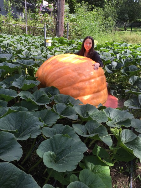 Finally my daughter is willing to be my pumpkin model. This is Persistence at 54dap. Tapes 817 with 36 days to weighoff. She has slowed down with nighttime temps in the 50's but I am stilling hoping to get over 1000.