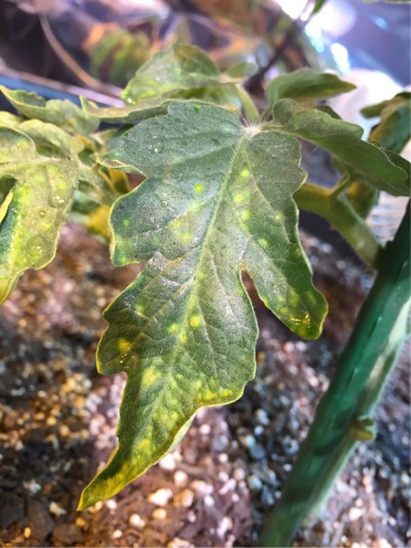 I am getting somewhat excited..already the two plants I sprayed earlier are showing improvement. So I sprayed a single leaf from another plant twenty minutes before this picture. I should have taken a before picture. In twenty minutes the protrusions have gone flat, the whole leaf has gotten a darker green. It still shows the discoloration of where the bumps were but I did not expect this quick of a change.