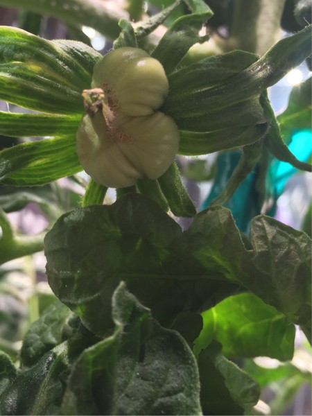 6.23 Megazac..to my suprise it is starting to look like this blossom set. If I get seeds out of it , they will be really mutts. This blossom was 80% pollinated with the Domingo plant growing now. That Domingo was grown last summer and was open pollinated. Watching the vines on the indoor Domingo I am noticing it has the vine characteristics of the Michaels Portuguese Monster that was the plant right next to it last summer. It is possible that seeds from this little fruit could be a cross of MegaZac(megamarv(?x?)x bigzac) x Oops(Domingo x Michaels Portuguese Monster). If I get seeds I will have to plant a few just to see what it can grow.