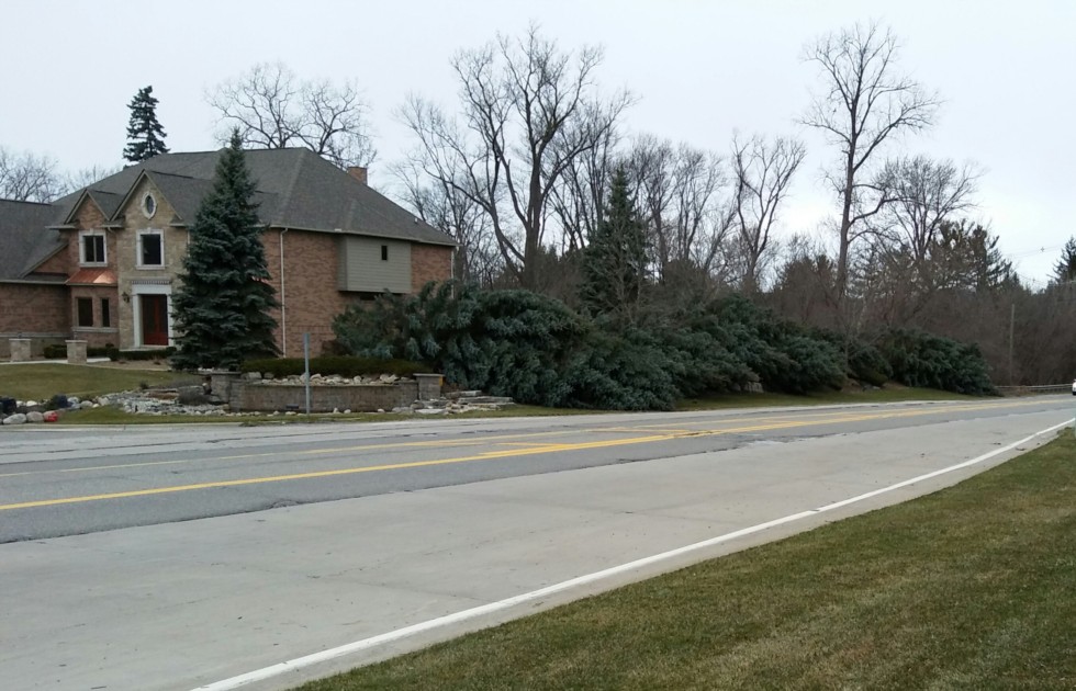 Yesterday we had winds of 60 mph. All day long and dte had over 900,000 costumers without power the most power outages ever on record in this area. I saw over 50 spuce trees uprooted myself. At this subdivision enterance around 15 trees uprooted and only one left standing. Never seen such a windy day before. Just glad it wasn't summer time when all the trees would have had leaves on them, the dammage would have been 10 times worse !!!