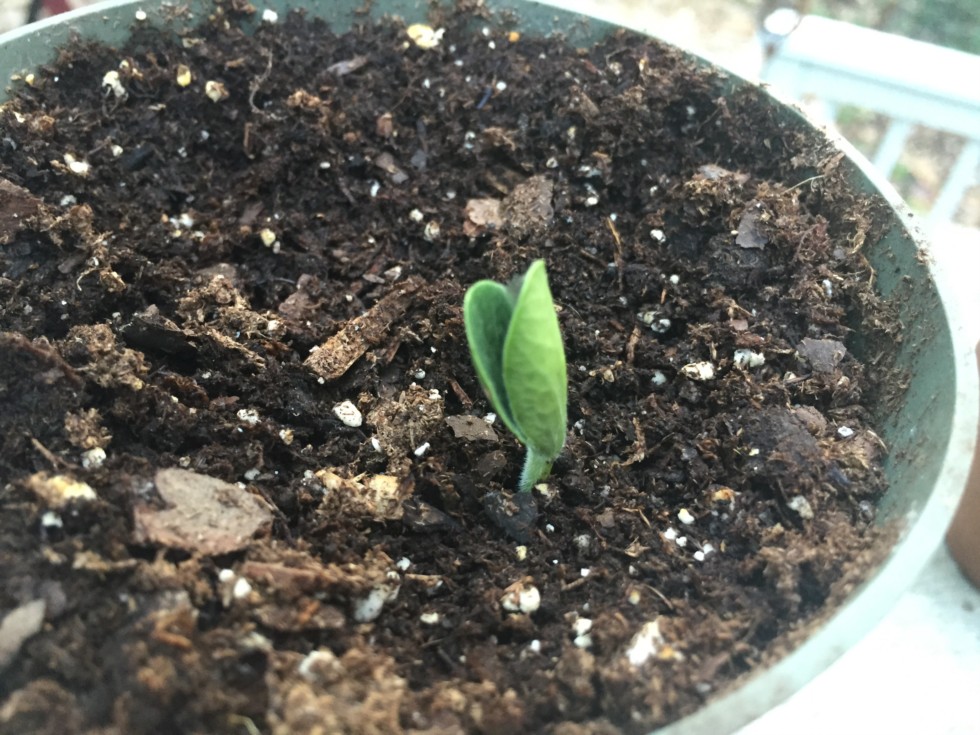 Another brand new mystery squash seedling. Definitely gonna need more room.