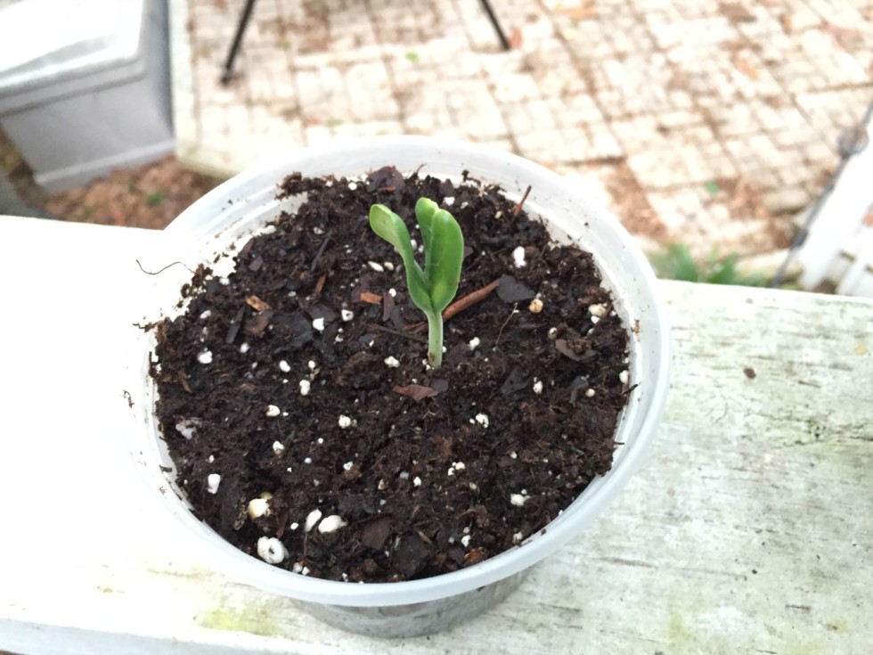 My first lageneria seed that has actually germinated (as opposed to being transplanted). I believe it is a long handle dipper gourd.