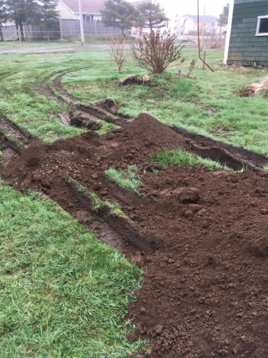 What a mess, the soil is so saturated that not one, but two trucks had to come in to pull the first one out.