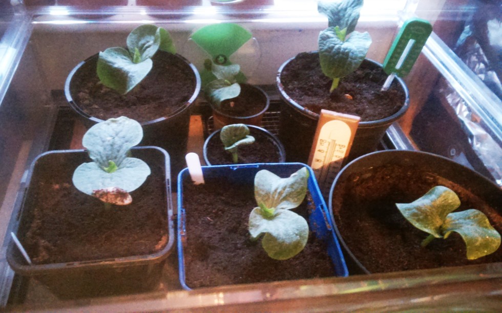 Here is the growing area this evening with the grow lights switched off after the daily 12 hour stint. There's additional light from the window too, and it's all reflected back into the growing area by silver foil sheeting.