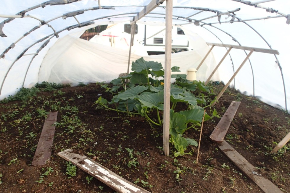 The 1445.5 Jutras squash at home. It was neck and neck with my 965 Makarchuk but I had to make a choice. I figured Alex was growing the 965 at the farm so we will see how it goes out there. Last week was brutally windy for 4 days and I had to delay putting up the big hoophouse. It just would not have stood up to gusts 110 km/h winds for several days. The small houses survived nicely. Please, just no more wind this year.....