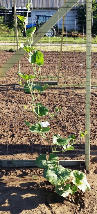 Went through my stash of seeds which is not very big and found a few things to throw in the dirt. Long gourds running: 126.5 May, 111.5 Martin. Field pumpkins planted 2 - 150 Risi and trying marrows for the first time 2 - 105 Risi, 83 Risi. Contacted Mr Kent and he delivered 2 - 270 Kent bushel gourds which also are in. I think 2 lope plants will finish me up this year and they are just peeking through the dirt this morning. Going with my own 8.0 seed lope from several years back (64.8 Robb x sib).