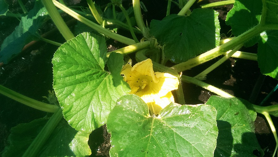 First male flower of the season today on the 333, a bit of a fluke I think as the others are nowhere near ready yet. It's been hot and sunny all week. Growth of the main vine continues at about 6-8 inches per day. All is well!