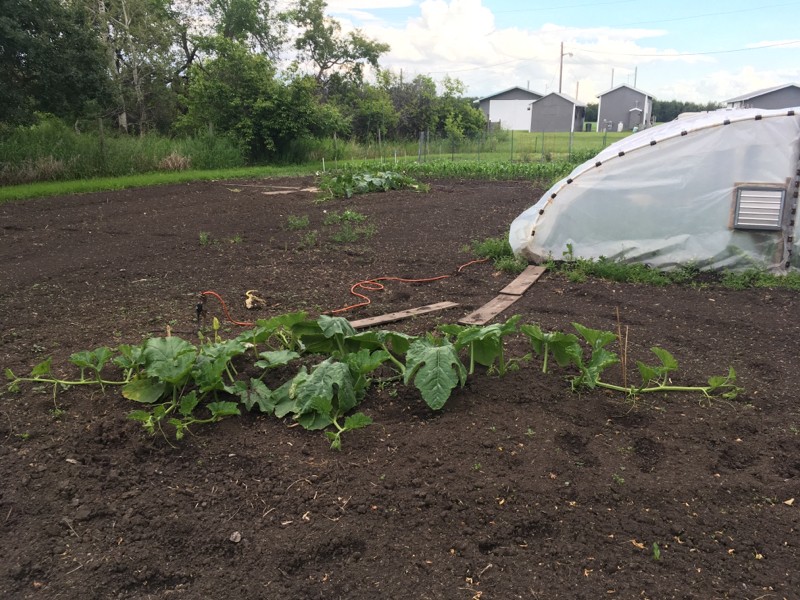 Field pumpkins. Really beat up from the wind. 80k gusts will do that even when sheltered. Without the trees around the yard there wouldn't be a garden this year. Cold nights, hot days, not much sunshine and rain just about every day.
