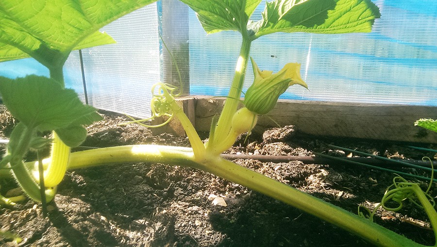 I wasn't expecting the flower on the 333 to open for a few more days but there it is this morning ready and receptive. It's not opened particularly well and doesn't look very pretty, but the stigma is fully visible and so I self-pollinated it today with 3 male flowers as none are yet available on the other plant. If it doesn't take, there's another one a couple of feet further along on the main vine, and more on some of the side vines should it come to it.