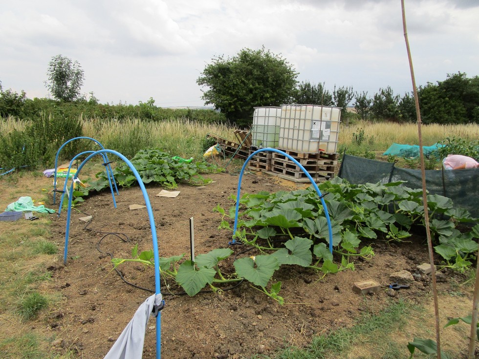 1027 Bridges at the front...with hardly any male flowers in bloom, but what look like lots of male flowers in bud. The 1109 Borgers towards the back, fortunately thee are plenty of available male flowers on the Borgers.