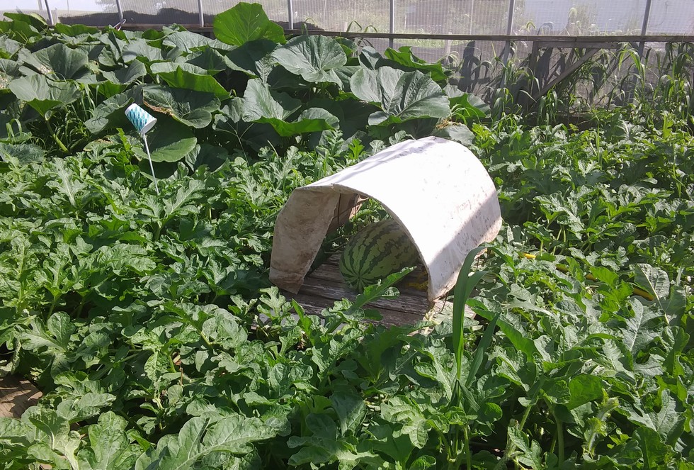 146.5 Melon(1), 98.5 ott/10 dap. Side split appears to be healing ok. Already out grown the 1st sun hut so replaced it with the hut that sheltered it's Mother, Hoping I have to replace that one. Leaves on this plant out on the ends are getting BIG! Next diary entry on day 20 unless it goes down.
