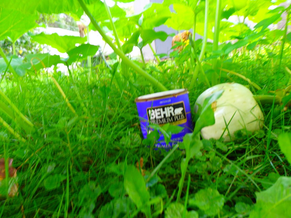 White set 1 next to pint size can of paint. Buried end of main vine to hopefully make it grow bigger.