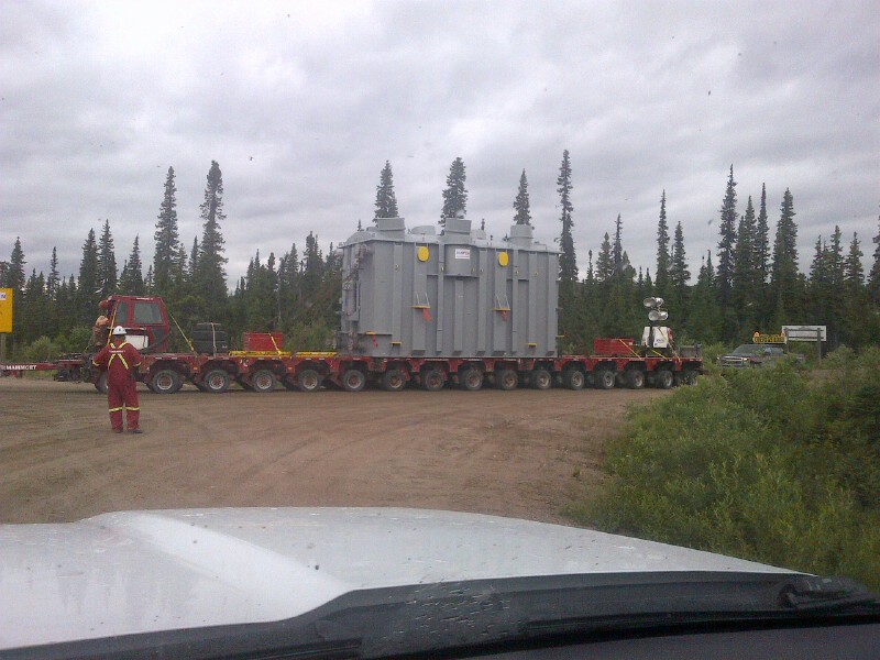 This was responsible for a lot of resources being sent to a very remote area. One of seven turbine/ generators headed to Muskrat Falls. Over 300 km of mostly dirt road and nothing in between.