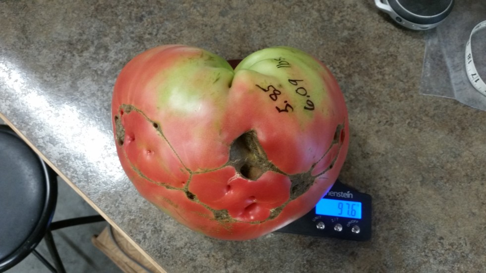 Another nice one 6.09 lbs. grown from a 5.85 boudyo, circ. is 24.75 inches . Just finished 90 lbs of salsa and 80 lbs. paste. We've processed around 400 lbs of tomatoes so far and the plants are still loaded.
