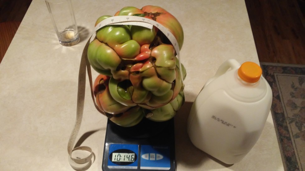 Well look at that, it only takes 33" circumference to get a 10 lbs tomato !!! (0: