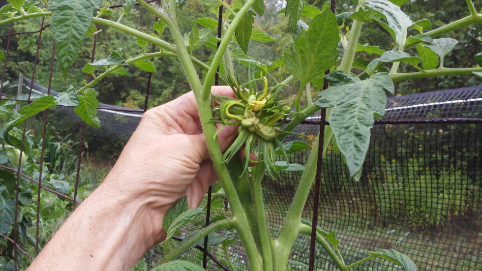 Well it looks like my ribbon vine. Tomato has taken and is beginning to grow !!! I may have to build a greenhouse over thos one so that it can make 10 lbs.