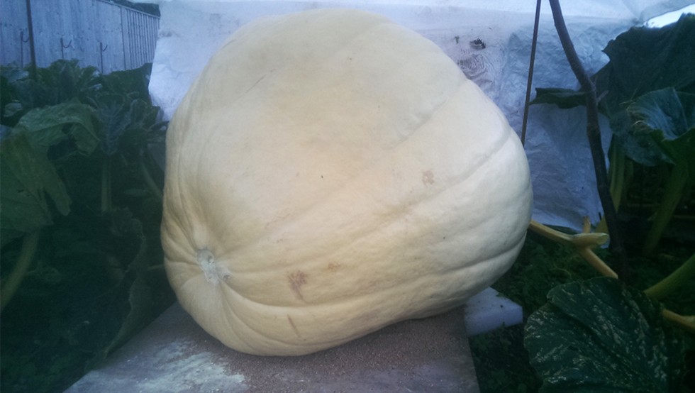 The 333 at DAP 53 showing 154kg (339lb). There was a bit more soft rot at the blossom end under the layer of sulphur powder today which I did my best to remove. There is also a large split at the stem end too.