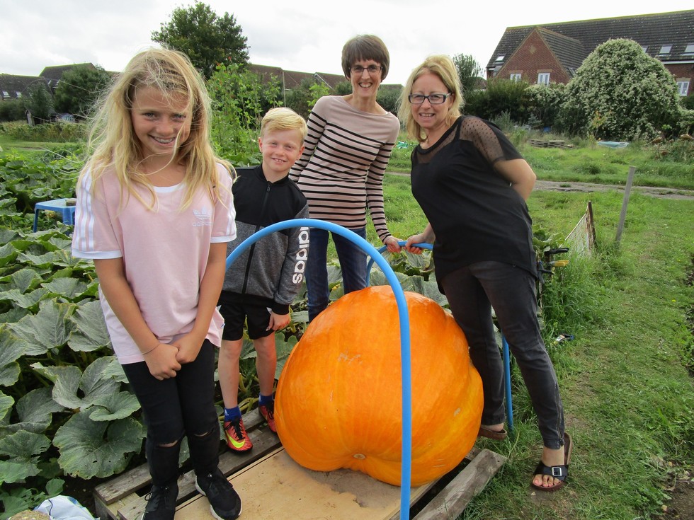 Visitors to the pumpkin patch today...and these guys thought that Kevin was big .... Hildegard is measuring 286 lbs which is well over 20 Stones on dap 57...less than 6 weeks to the show.