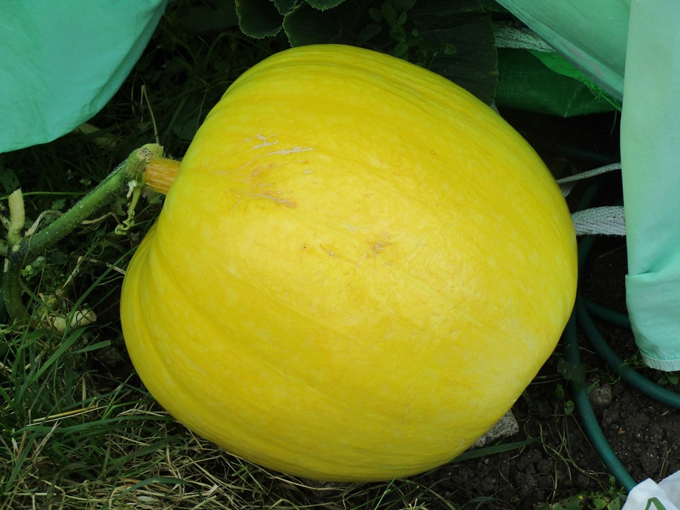 Thora pumpkin on the 110 Borgers is doing quite well. Of unknown age but ?23 DAP (open). Just letting her do her own thing, measuring at 42 lbs.