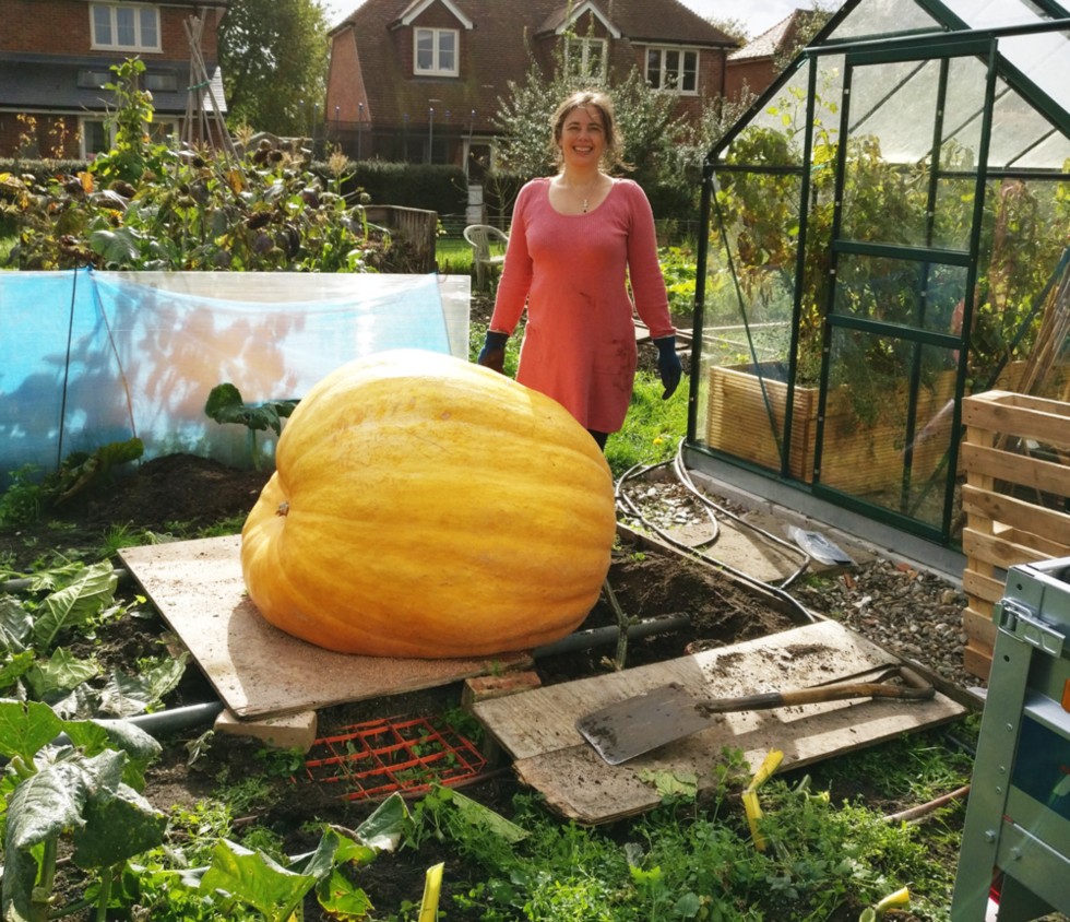 Nicola has been very supportive this year, I hope she will be next year when I have bigger things planned! As you can see, the pumpkin isn't sitting well on the board that it grew on, so we'll have to have a think of how to get it onto a pallet, and then onto our trailer. There's no room for fork lift trucks or tractors where we are, so tomorrow morning we've got a bunch of people coming down to help out with poles, levers, ropes etc. Sheer force of numbers might just do the trick!