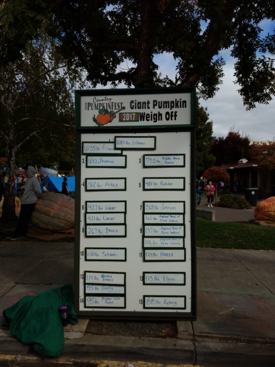 Leader board for my local pumpkin weight off winner 1081 lbs