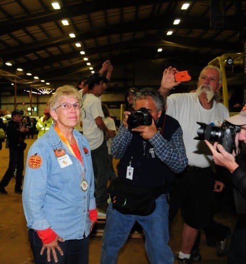 The moment that Holly sees the scale settle on 2,017.5 pounds. All her hard work pays off. Thanks for the photo Scott.