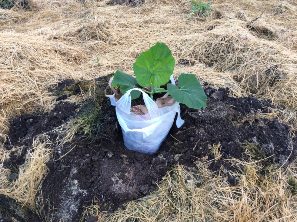 ...just kidding. It's test planting time, though, ...grocery bag method.