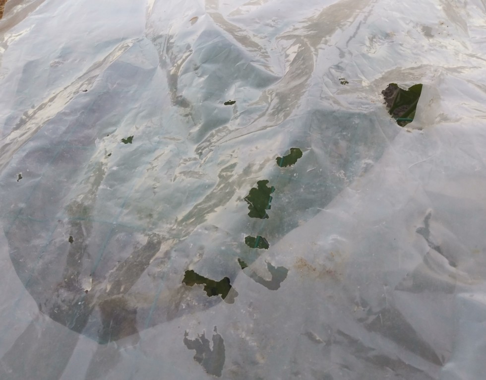 They have had a double layer of plastic but as you can see its very ratty. And a white sheet on top of the plastic most nights. I try to give six hours of darkness then there is a small grow light 100 watts or less I think. I dont know exactly. But the bale itself is probably a comfortable 70 degrees in the middle. Not hot any more, but not cold either. So far its working. Although... the height has dropped by a full foot since I placed it there in December. I sort of anticipated this, but if it sinks any farther the roots won't line up with the surrounding soil anymore. But thats ok. Because a foot of good clean dirt could be used to cover the sunken area. I have not leveled the patch yet but will soon. And then... only you guys will know its a 'buried hay bale patch'. It will look normal.