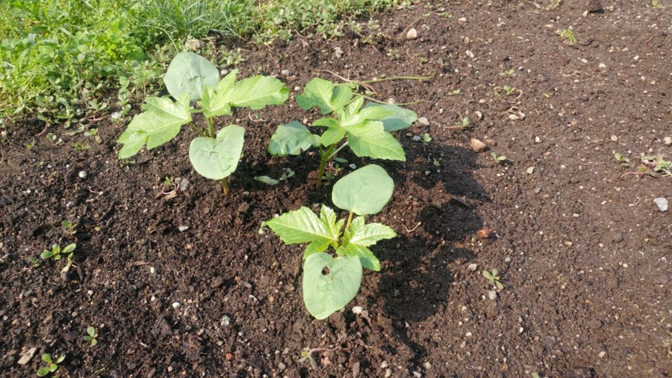 Gene Lariviere gave me some Caster Bean Seeds. All 10 seeds came up in various locations on the edges of the garden. These plants are cool. They will have massive Leaves in a few weeks