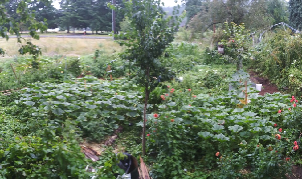 I never got my boundary set up but the 150 plant is in about 150 ft. If it does anything spectacular I can take all the measurements to see if I was on the money. Its dead ended now. Its on the left. My 430 on the right could squeeze into 100 ft Sparse vines and leaves, but what a pumpkin, wow!