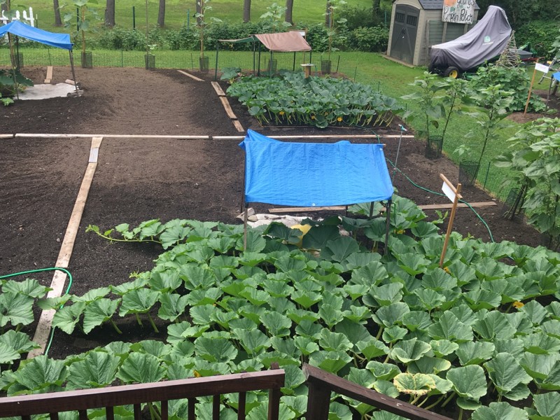 The new patch is now fully electrified so should be critter proof. These photos were taken this morning as we had a couple of big storms go through this afternoon. So far everything is drenched but sound.