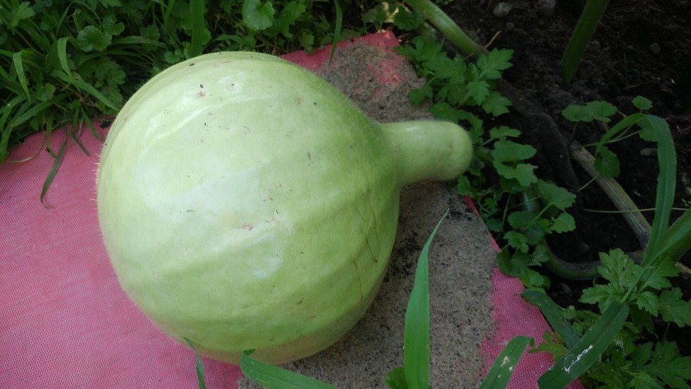I was finally able to set a Bushel Gourd on the 384 x 384 Terry at about 20 ft out on a side vine. This one appears to have taken. Unique shape is interesting. It will be a challenge to get an accurate OTT on this one shown at 15DAP.