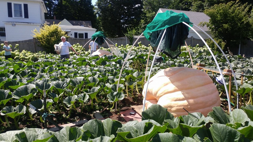 At the NEGPGA Patch tour yesterday in and around the Topsfield, MA area, we got to stop at Woody's patch. He has a couple big ones growing.
