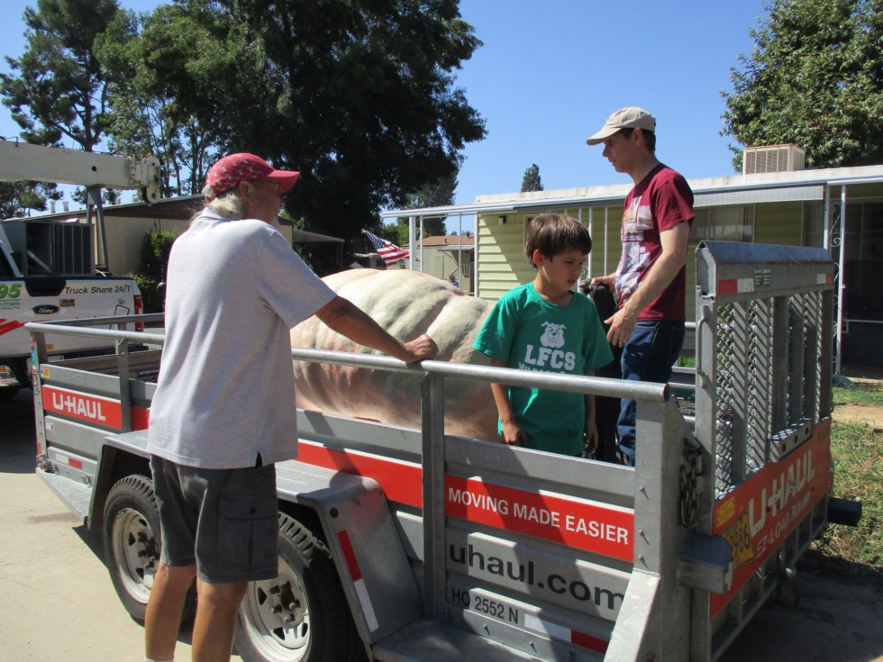 she's in! Her shape made her quite unstable so we propped her with a bale of hay.