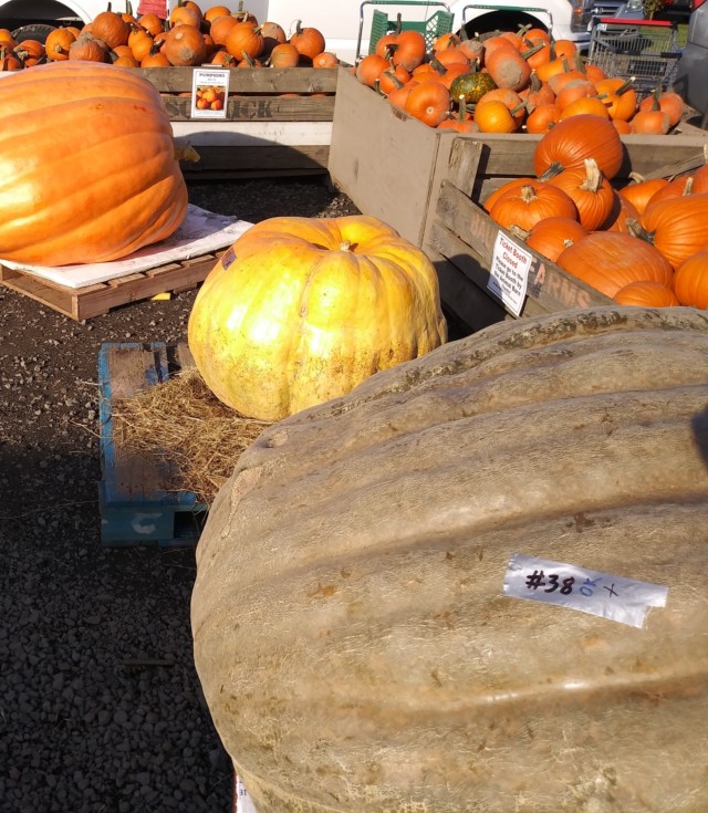 Biggest off the 1963.5 Stevens 150 sq ft plant. This plant also had an incoherent approach to growing pumpkins. It aborted so many that finally I let everything grow. This was the largest. The plant probably produced around 600 lbs total. Equal to the production in past years, so no improvement.