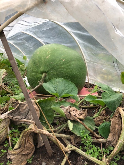 and then there was one....We are down to the last fruit in the patch. Its a 189 Fleming x 384.5 Terry Bushel Gourd