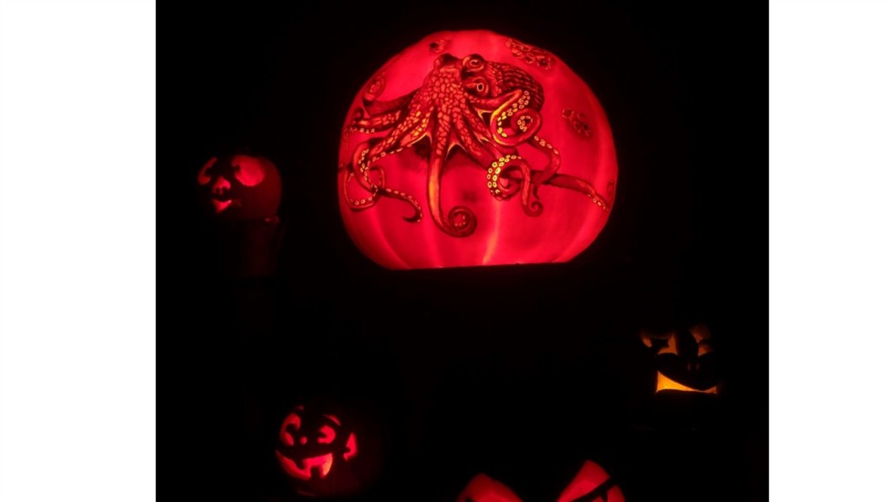 Brought our pumpkin to he Roger Williams Park and Zoo. They gave it an new Octo Face and put it on display with about 500 other carved and painted pumpkins. Very cool to see it at night.